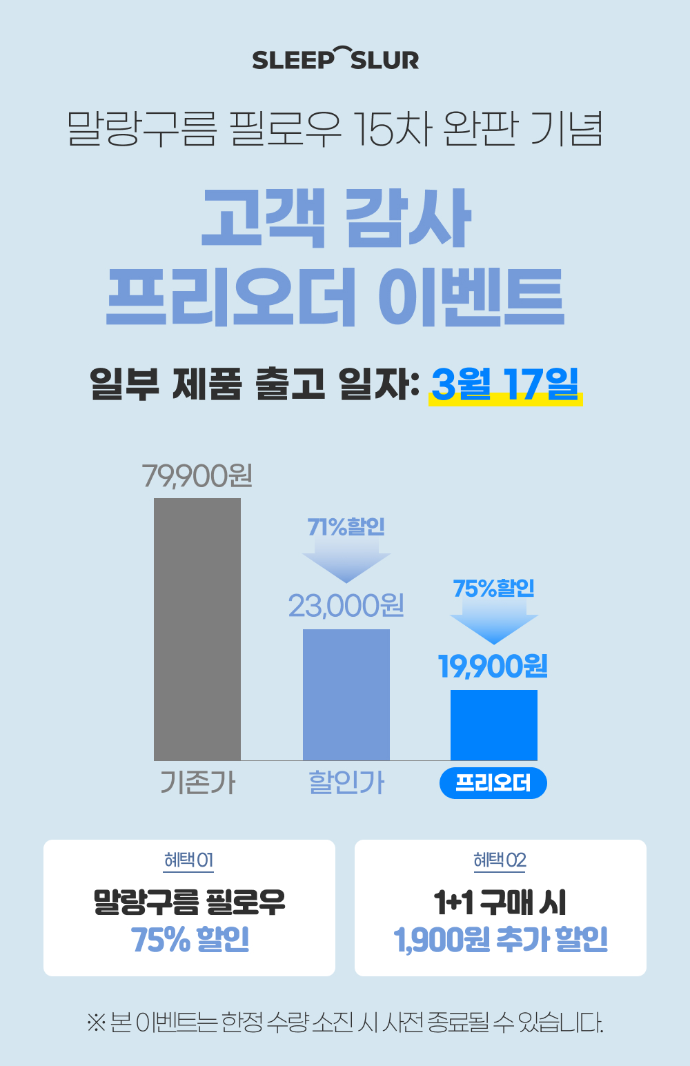 말랑말랑 구름처럼 푹신한 말랑구름 필로우🎁 완판기념 고객 감사 초특가 할인일부 제품 3월 17일 출고 예정입니다