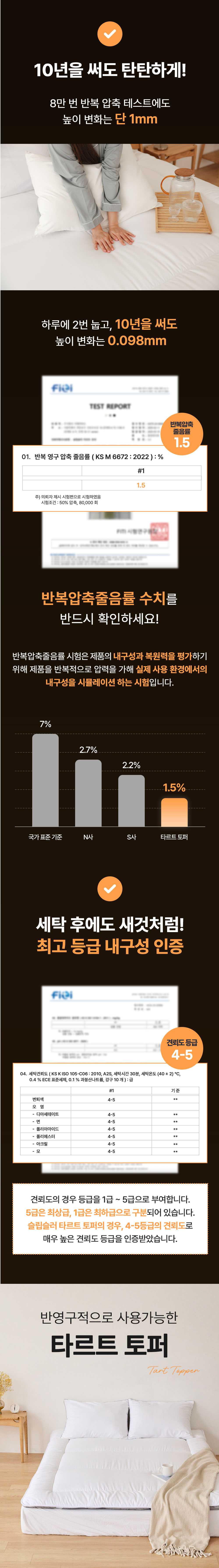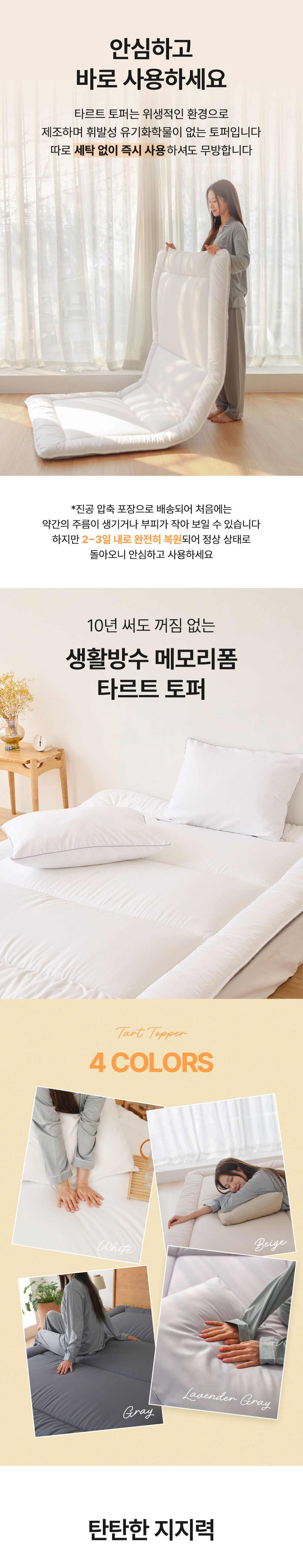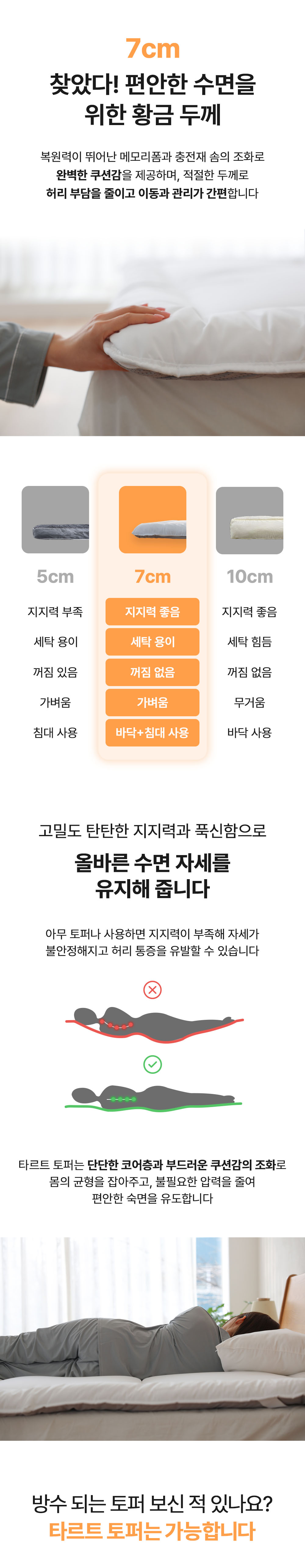 [10년 써도 꺼짐 없는 지지력 & 7cm 두께] 생활방수 메모리폼 타르트 토퍼
