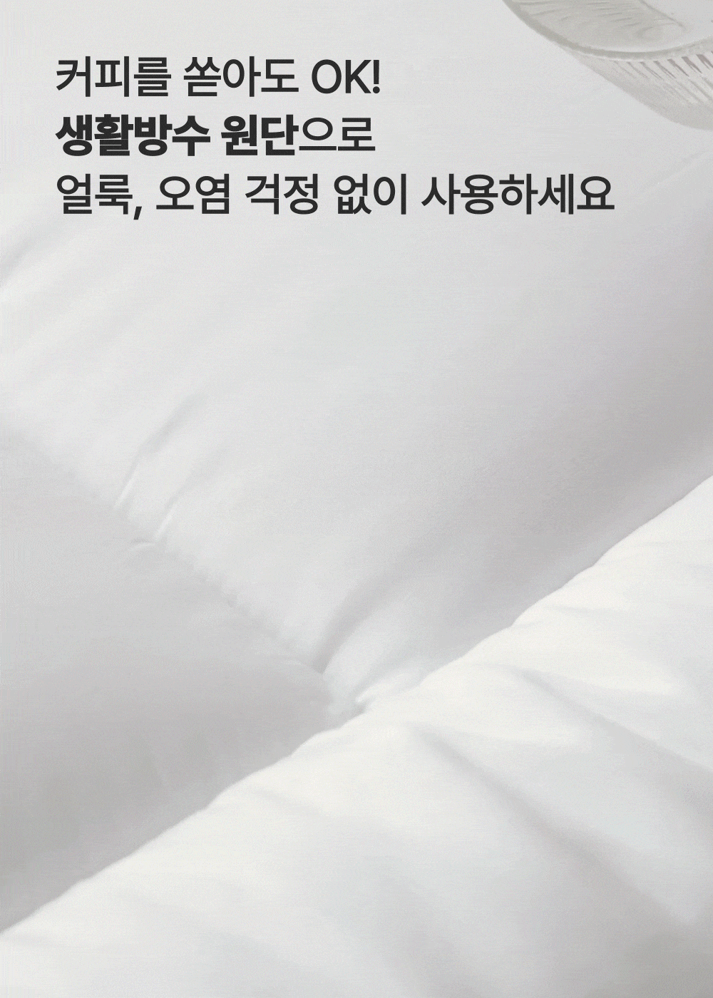 ✔️ 생활 방수 원단으로 오염 걱정 없이 깔끔하게
